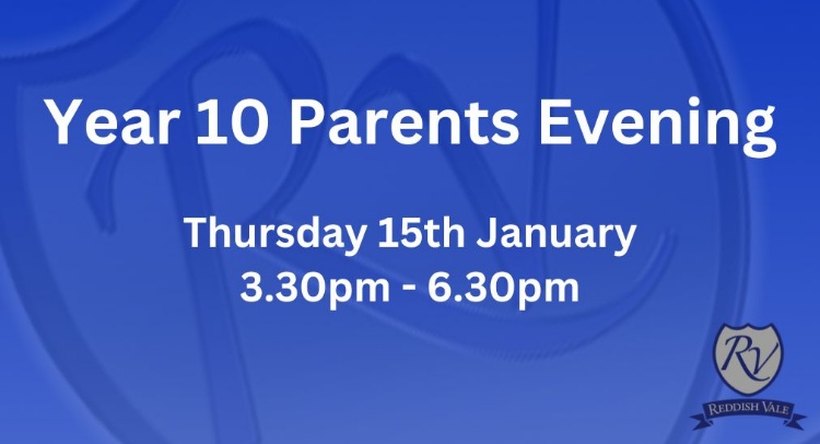 Year 10 Parents Evening will take place in school on Thursday 15th January 2026 from 3.30pm to 6.30pm.